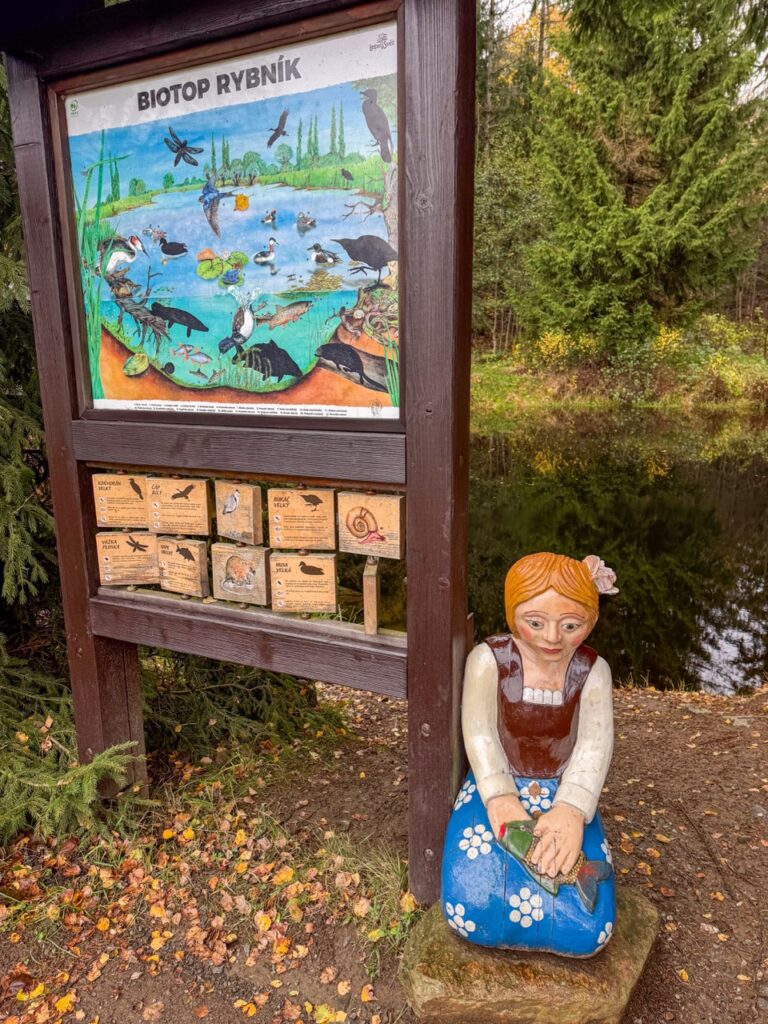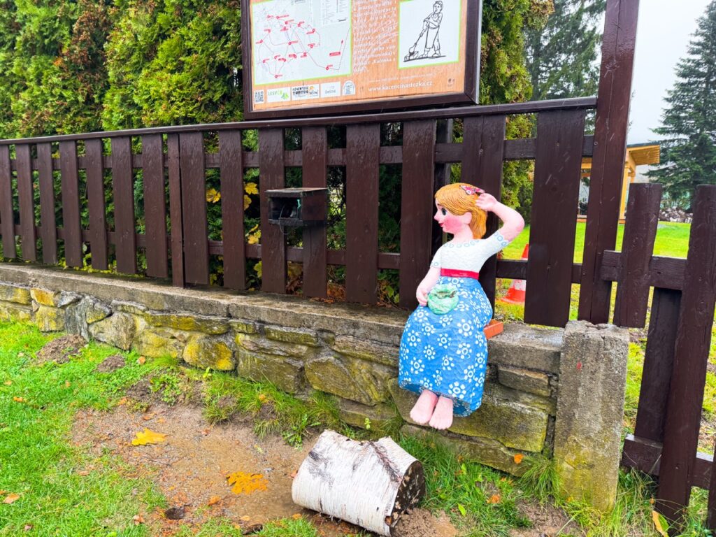 Na ścieżce znajduje się 18 rzeźb Kacenki, a cała trasa na mapie oznaczona jest zielonym przerywanym szlakiem (Kačenčina pohádková stezka). Poza tym, gdy jesteście przy jednej rzeźbie, znajdują się obok niej strzałki, wskazujące drogę do kolejnych. Na mapie pokazane są lokalizacje poszczególnych punktów, które można połączyć w jedną długą wycieczkę lub kilka krótkich. Najdalszy punkt znajduje się obok szczytu Velka Destna. Przewyższenie na trasie nie jest jakieś znaczące, bo szczyty w tym miejscu nie są wysokie. Jeśli jednak ktoś zdecyduje się od razu na całą trasę, to trzeba zrobić kilkanaście kilometrów. Trasa w większości prowadzi szerokimi drogami szutrowymi, a czasem nawet asfaltem i jest odpowiednia dla dzieci. Ale dorośli też tu będą się świetnie bawić.