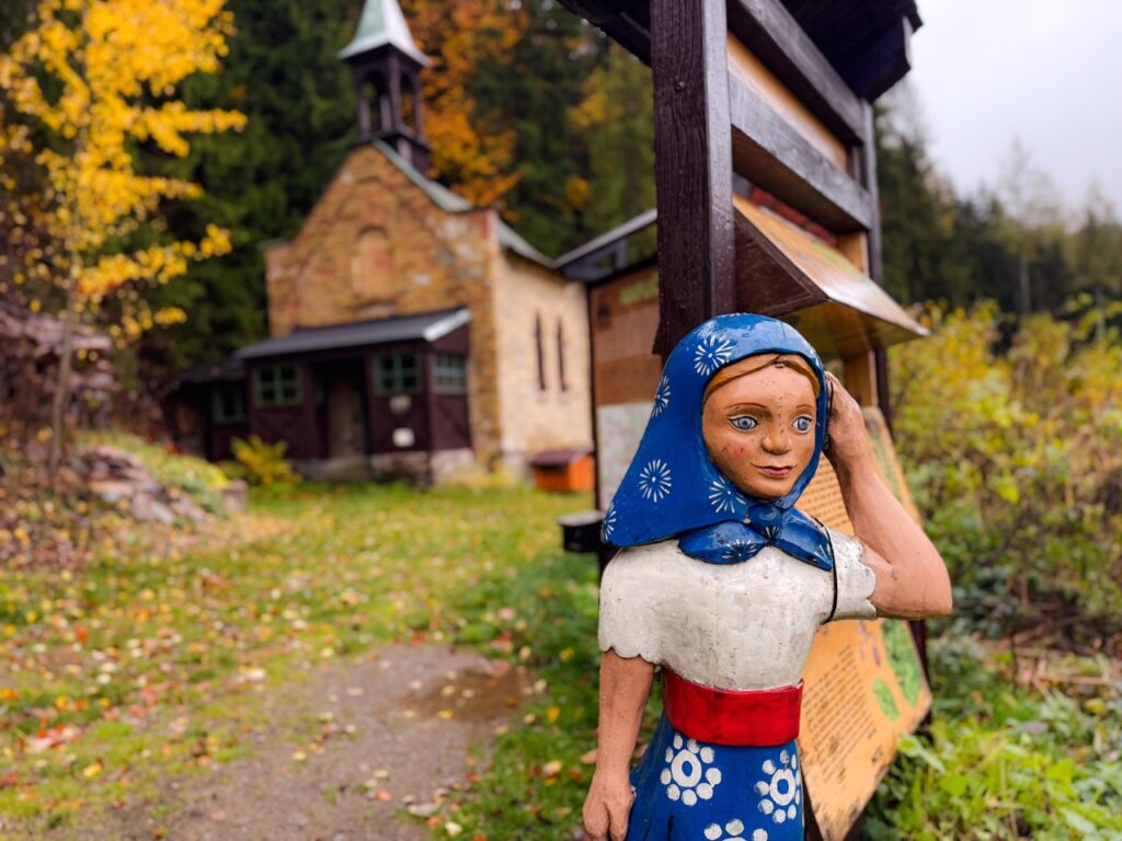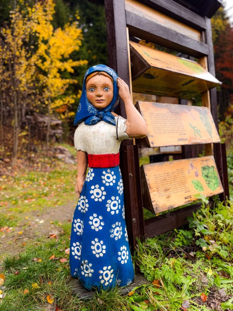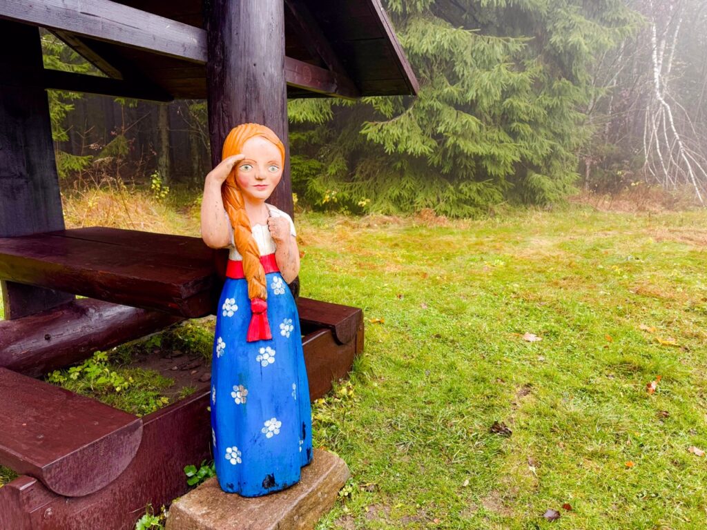 Szlak to nie tylko drewniane rzeźby. To przede wszystkim mnóstwo widoków (my trafiliśmy na kiepską pogodę, a połowę trasy pokonaliśmy w deszczu). Widoki jednak są, bo w tym rejonie byliśmy już wiele razy, więc możecie liczyć na rozległe panoramy. Poza tym na trasie czekają inne atrakcje, które sprawią, że nikt nie będzie się nudził przez cały dzień. Co można do nich zaliczyć?