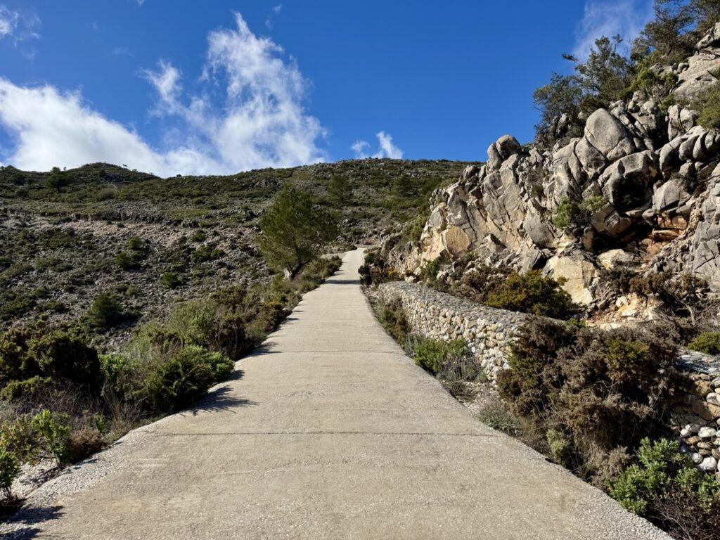 Po pokonaniu kilku kilometrów od startu docieramy na przełęcz Puerto de las Ovejas. Tu dołącza szlak, który ominęliśmy decydując się na wejście drogą rowerową. Na nim trasa na Mont Calamorro skręca w lewo. My jednak odbijamy na chwilę w prawo, prowadzeni pięknymi widokami. Nie wiemy wtedy jeszcze, że to będzie przedsmak tego, co czeka na na szczycie. Ale zawsze tak jest, że jak człowiek podchodzi gdzieś pierwszy raz, to cieszy go każdy pojawiający się widok. Bo w sumie nie wie jeszcze, co będzie dalej i czy takie same panoramy się powtórzą.