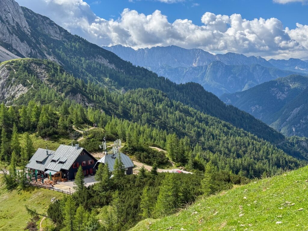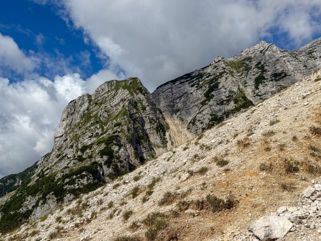 Po około 30–45 minutach stajemy na wierzchołku. Widok naprawdę zaskakuje – choć wysokość nie jest duża, panorama obejmuje całą przełęcz, serpentyny drogi po obu stronach oraz imponujące ściany Prisojnika i Mojstrovki. Przy dobrej pogodzie widać też dolinę Trenty i pasma Alp Julijskich w oddali. Zejście ze szczytu prowadzi tą samą drogą i zajmuje niecałe pół godziny. To krótka, przyjemna wycieczka, którą można połączyć z dalszymi planami – przejazdem przez przełęcz, dłuższą wędrówką albo wizytą w jednym ze schronisk.