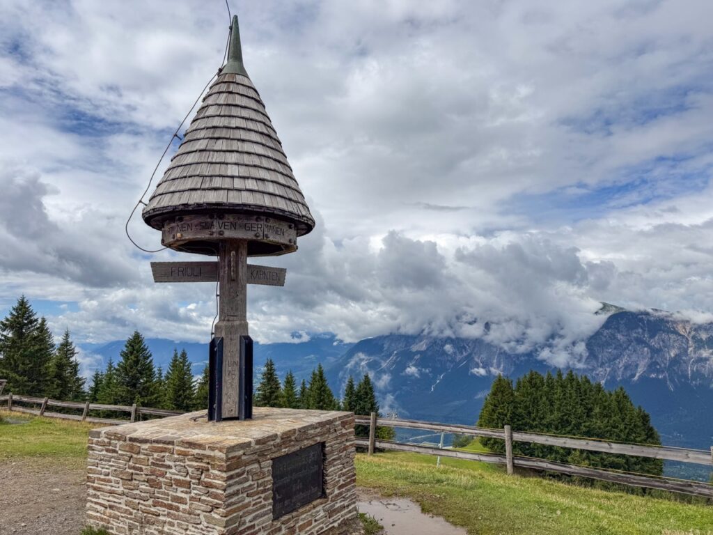 Wysokość 1508 metrów nad poziomem morza to znak, że jesteś w miejscu, gdzie łączą się trzy granice. Szczyt w zależności od tego, jak w danym kraju go nazwano, posiada następujące określenia: Dreiländereck / Peč / Ofen / Monte Forno. Każde z nich oznacza to samo miejsce.