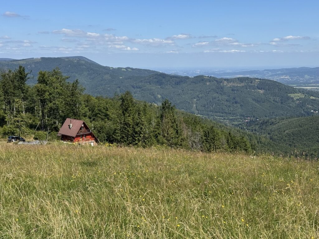 Skalka to górskie schronisko turystyczne położone na wysokości 906 m n.p.m. w Beskidzie Śląsko-Morawskim na zboczu szczytu o takiej samej nazwie. Na niego jednak nie wchodzimy, bo po analizie map i miejsca stwierdziliśmy, że szczyt jest pozbawiony jakichkolwiek widoków. Obiekt powstał w 1928 roku jako inwestycja Beskidenvereinu i miał być konkurencją dla otwartego w 1924 roku schroniska Klubu Czechosłowackich Turystów pod Wielkim Połomem. Miejsce jest bardzo klimatyczne. Można posiedzieć tu na zewnątrz lub w środku. Wokół znajdują się różne tablice edukacyjne oraz typowe w tym rejonie „bose chodniki”, czyli ścieżki zmysłów, po których można chodzić boso.